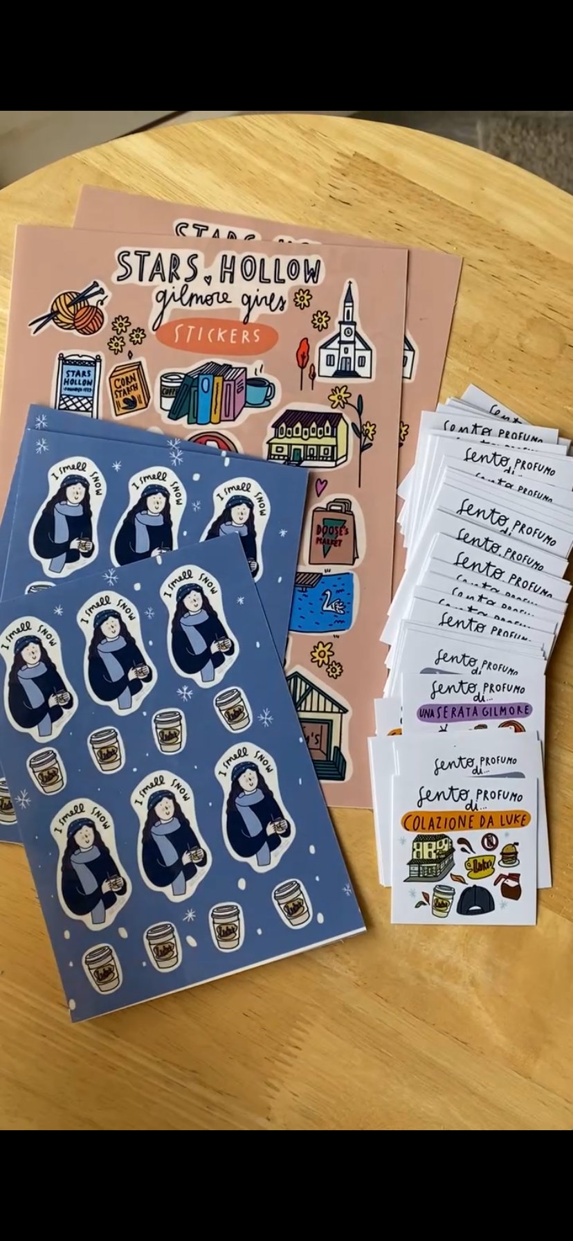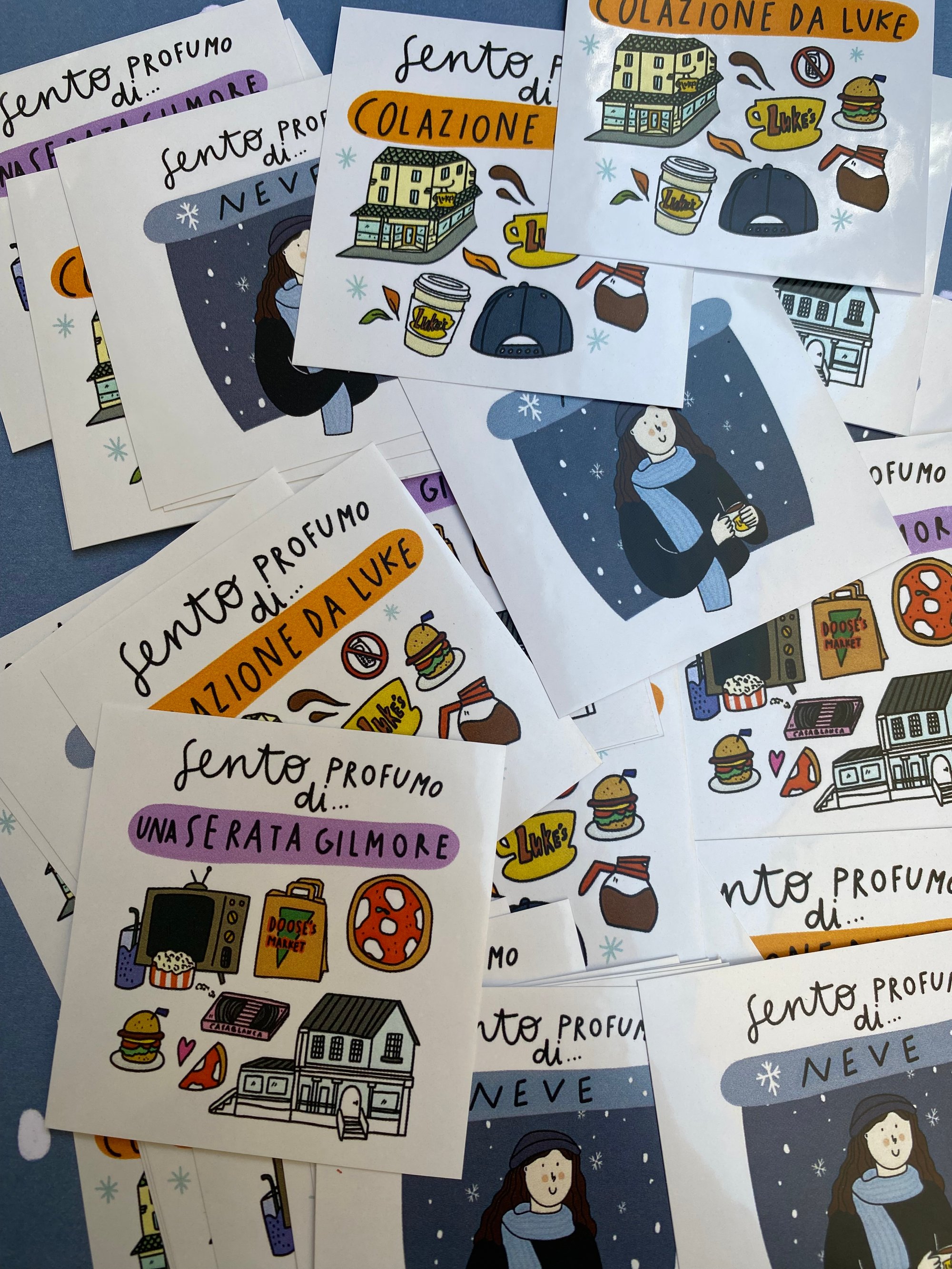 - un foglio di stickers da tagliare A6 (foglio blu - lorelai + Luke tazza)